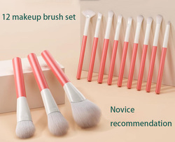 12pcs 천연 헤어 메이크업 도구 사용자 정의 로고 개인 라벨 아이 섀도우 브러쉬 핑크 메이크업 브러쉬 세트 허용